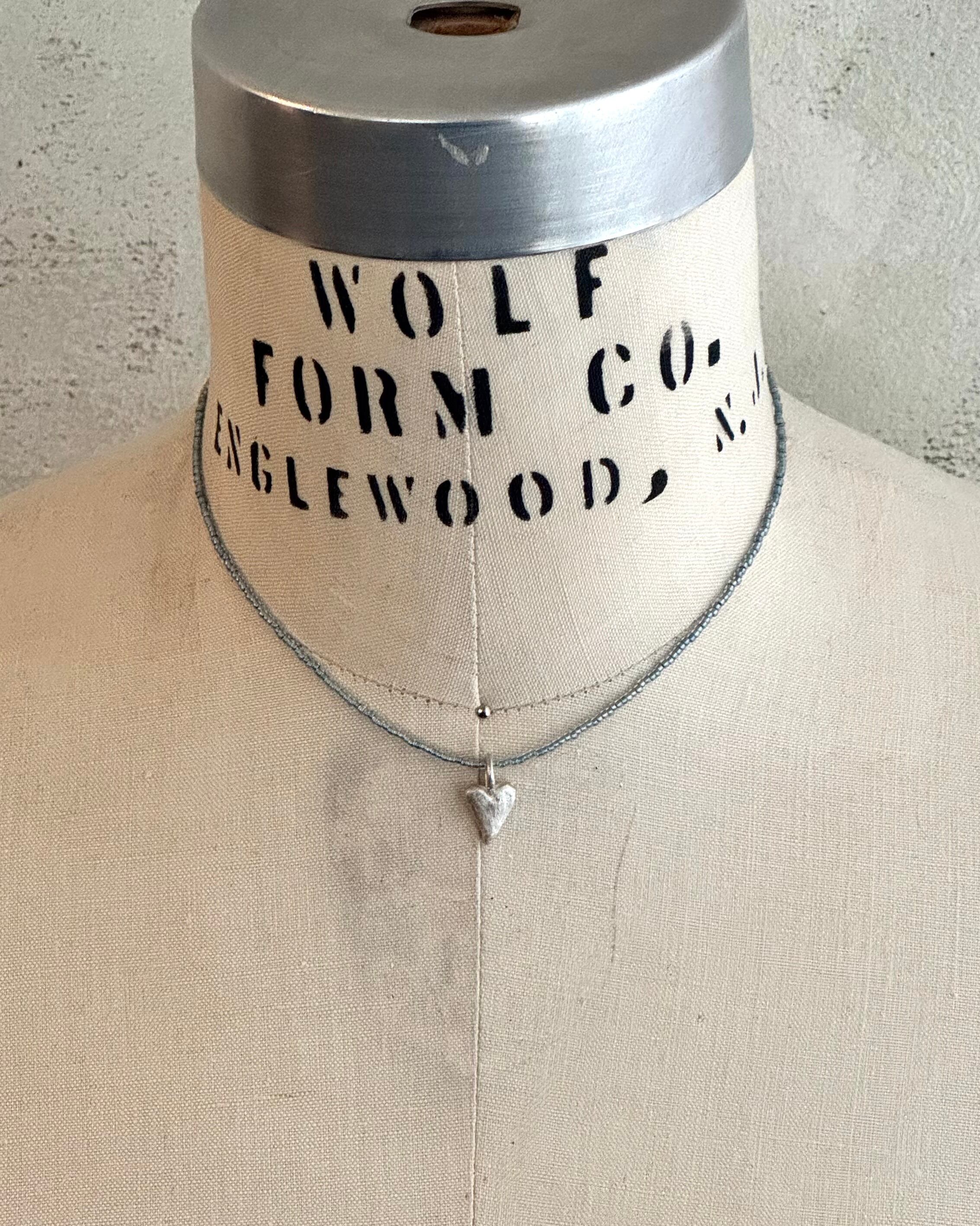 シルバーで製作したハートトップスをブルーのビーズでネックレスにしました。