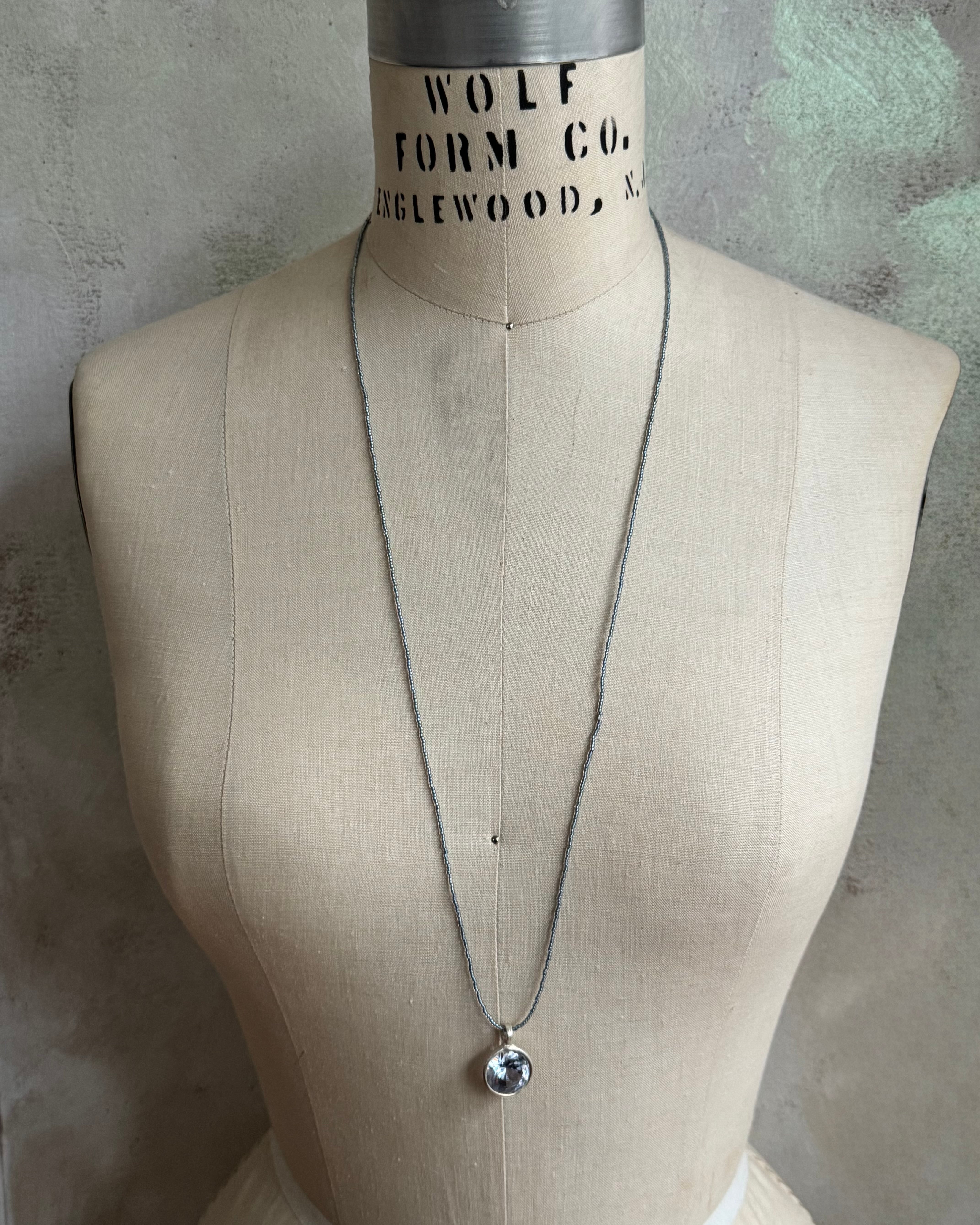 115_blue zirconia long necklace