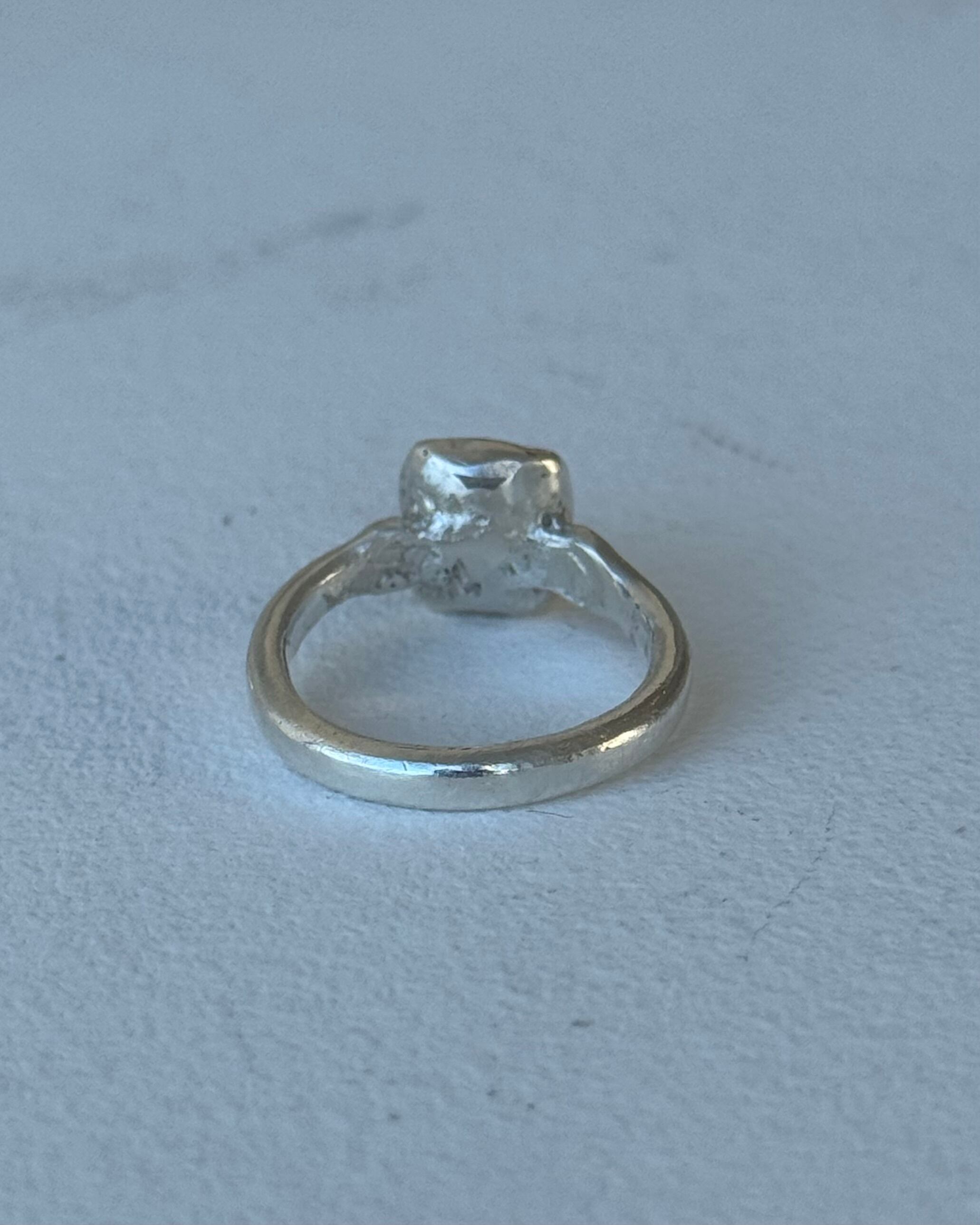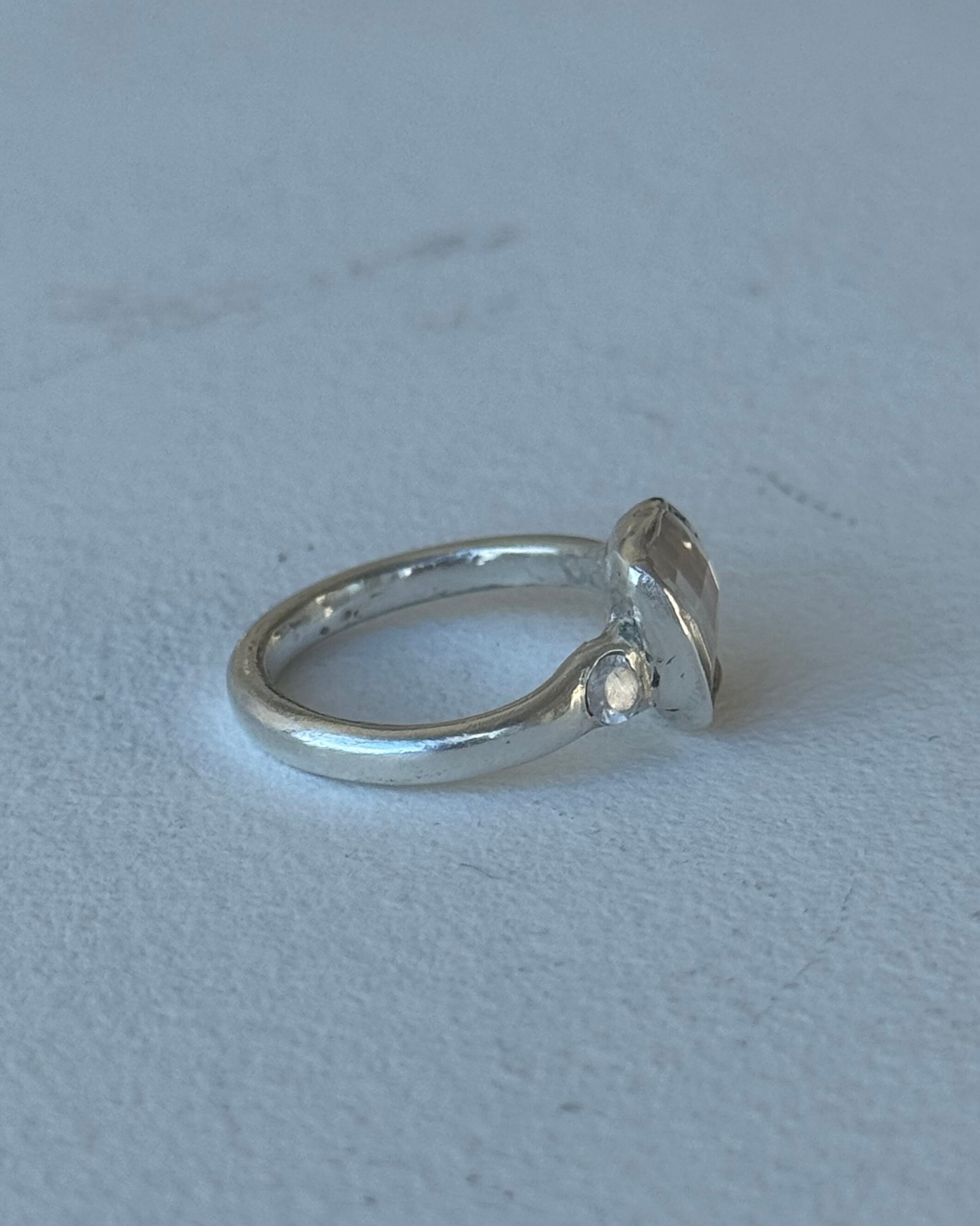 透明感のあるスクエアカットクリアストーンを主役にしたリング。