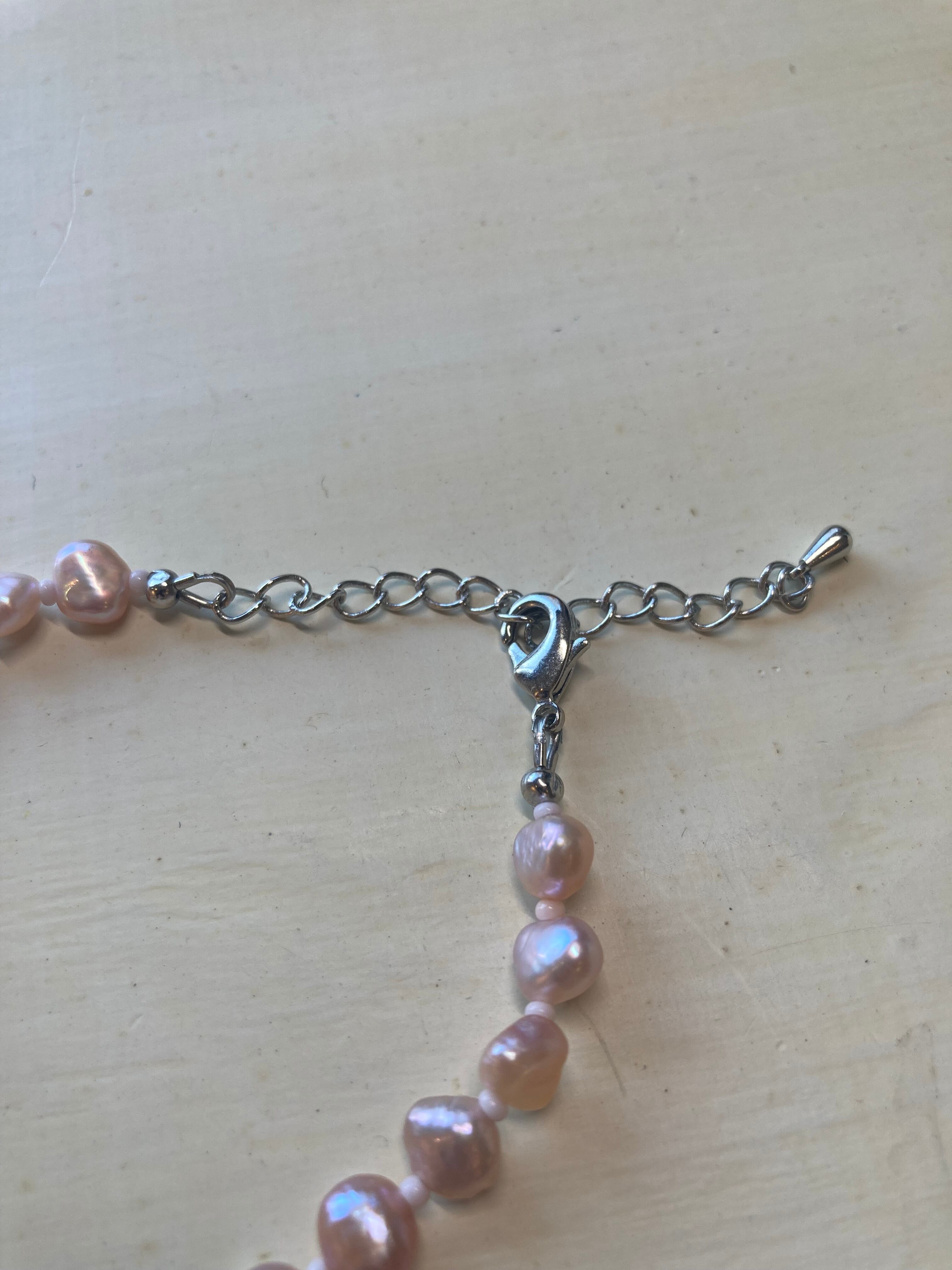 淡水ピンクパールを使用し、ペンダントトップの金具は純銀になります