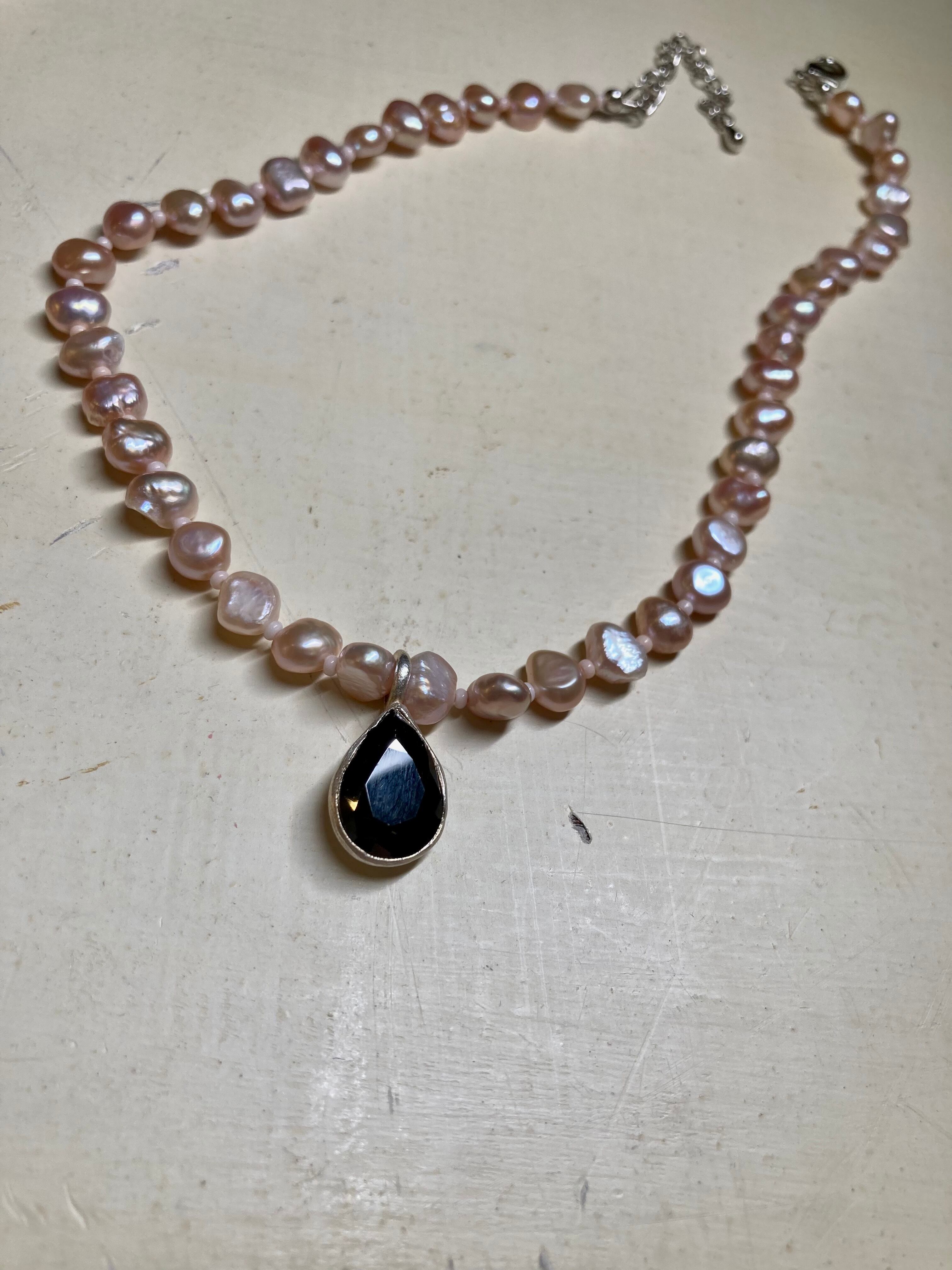 淡水ピンクパールを使用し、ペンダントトップの金具は純銀になります