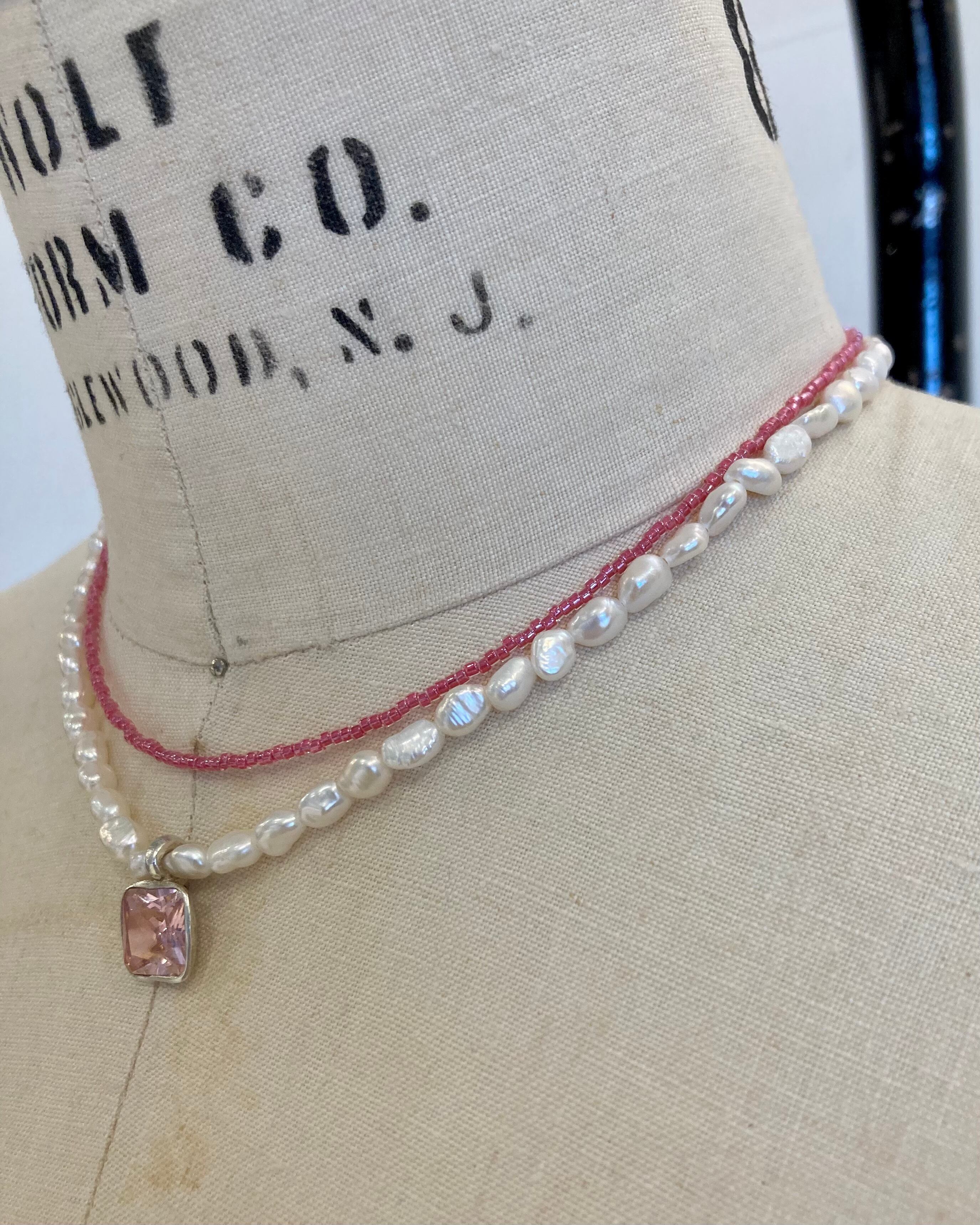 29_pearl×pink zirconia&pink beads necklace