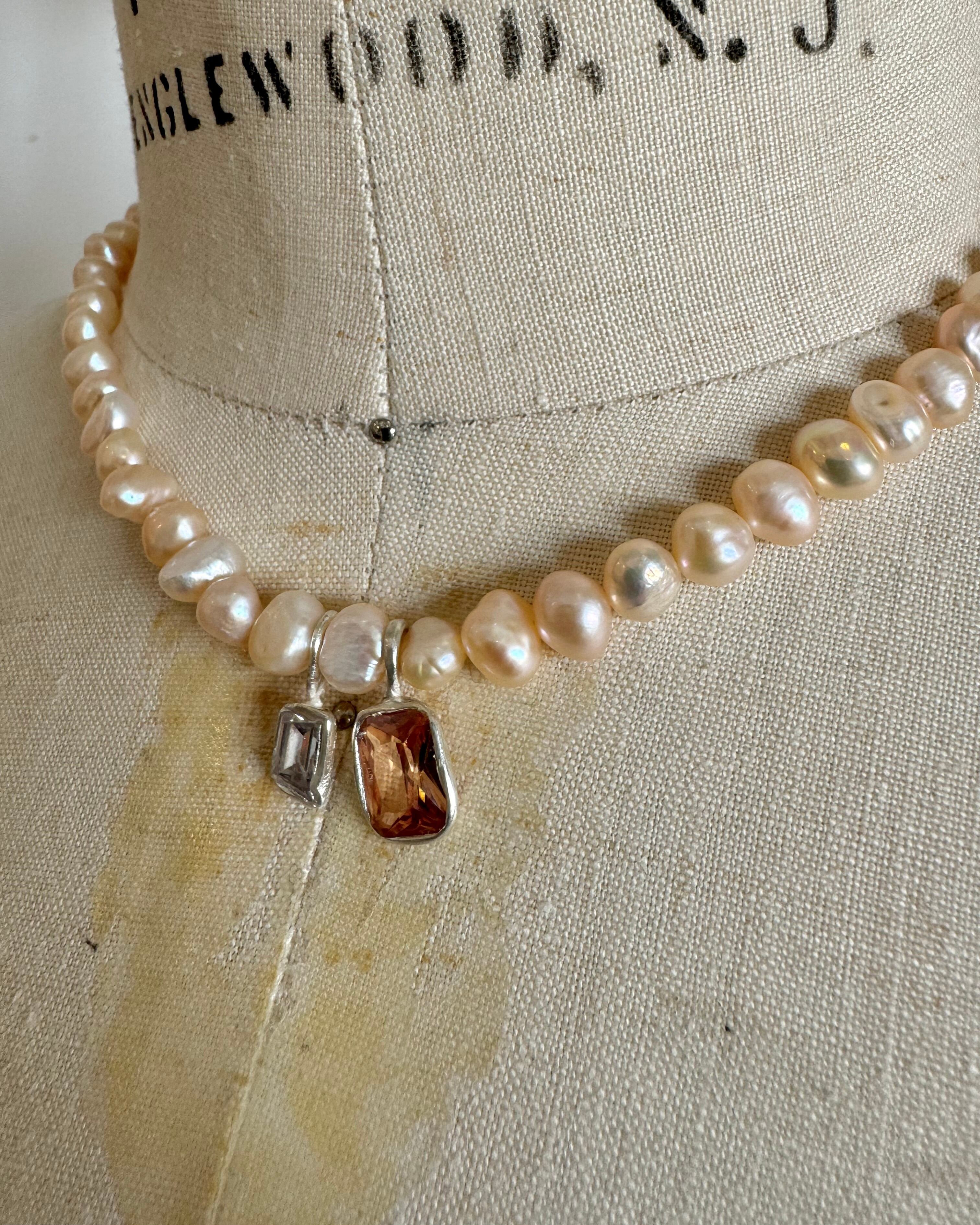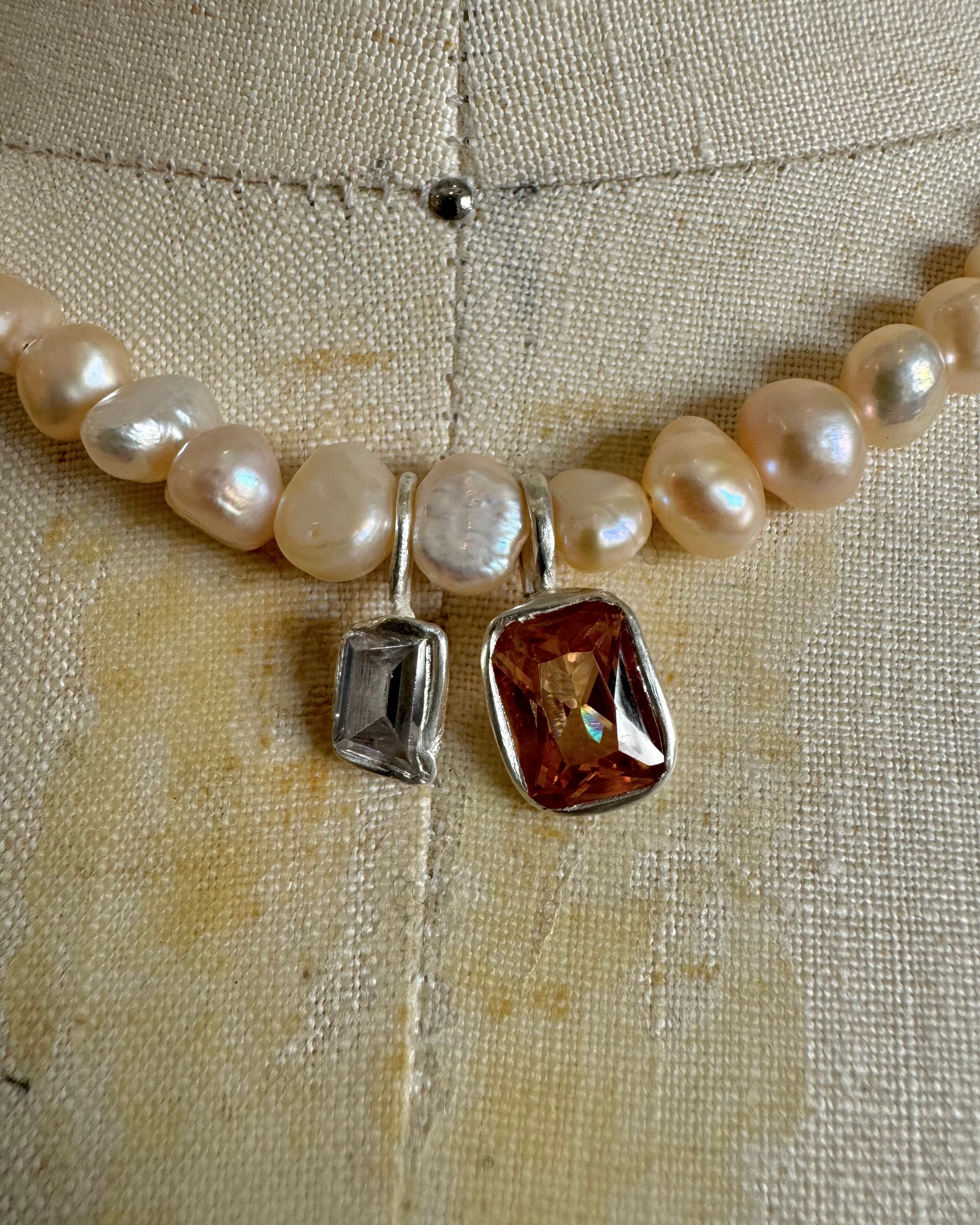 56_orange pearl necklace×zirconia necklace