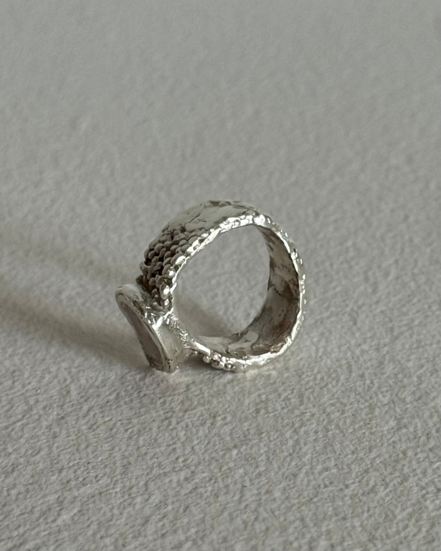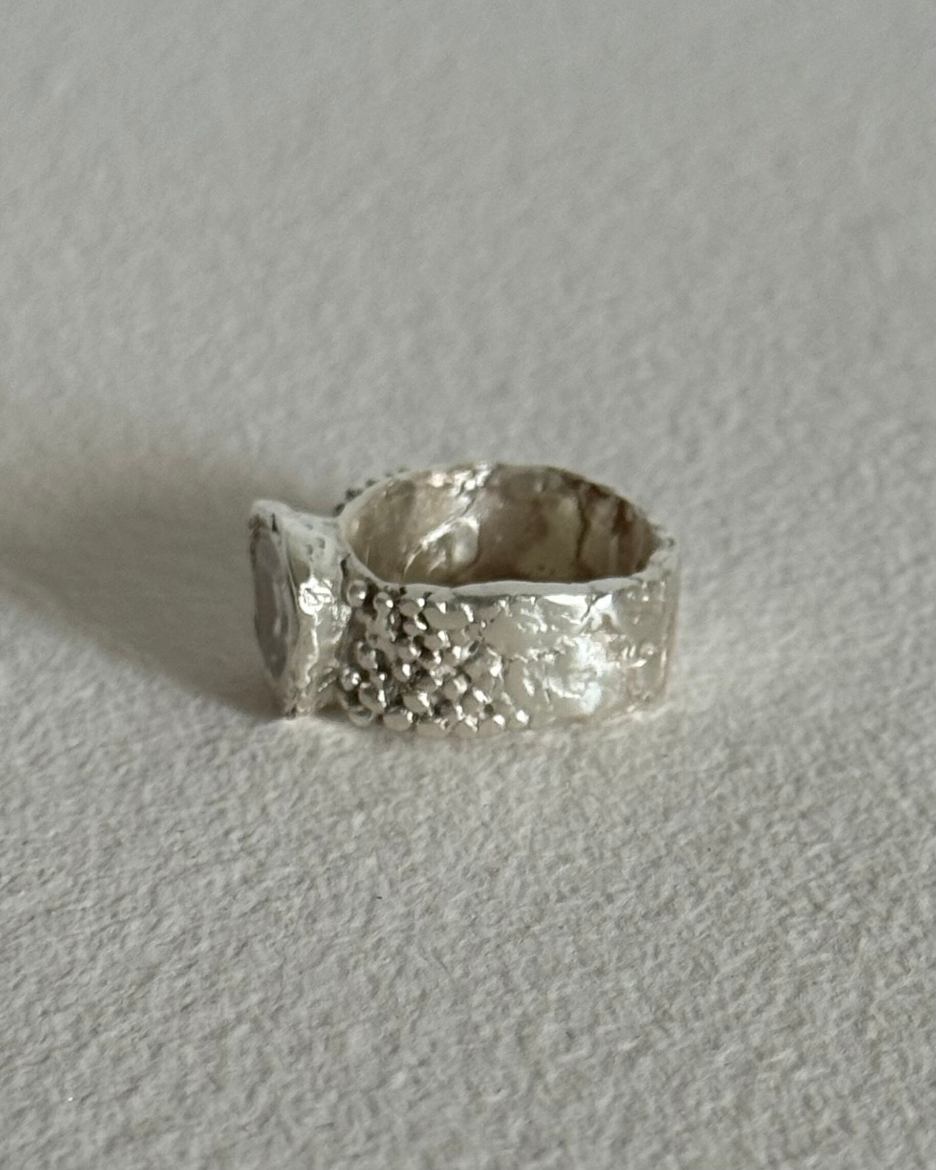 両サイドにはシルバーの粒をあしらい、後ろはフラットなデザインです。