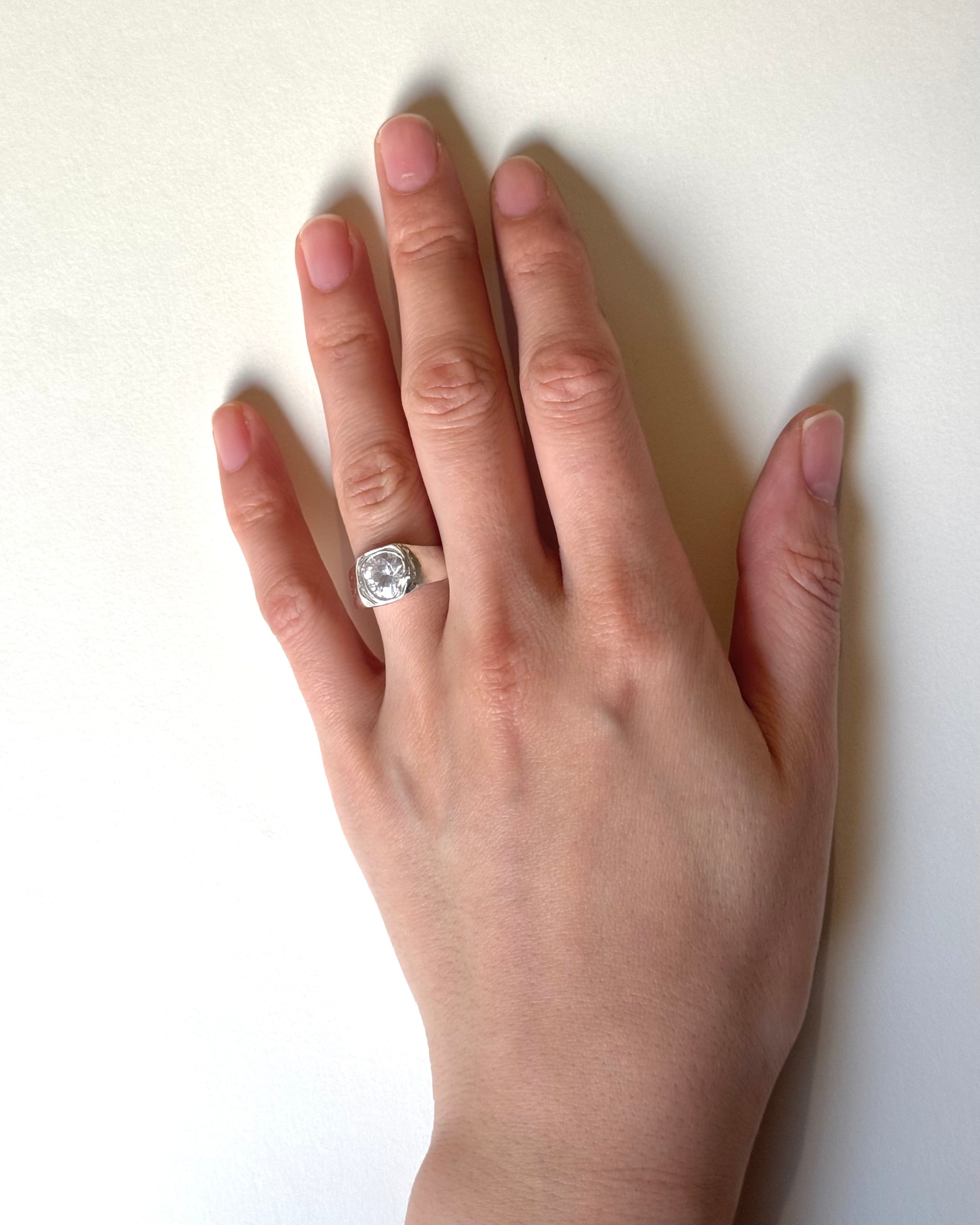 ハート型のクリアジルコニアとシルバーをあわせたリング。